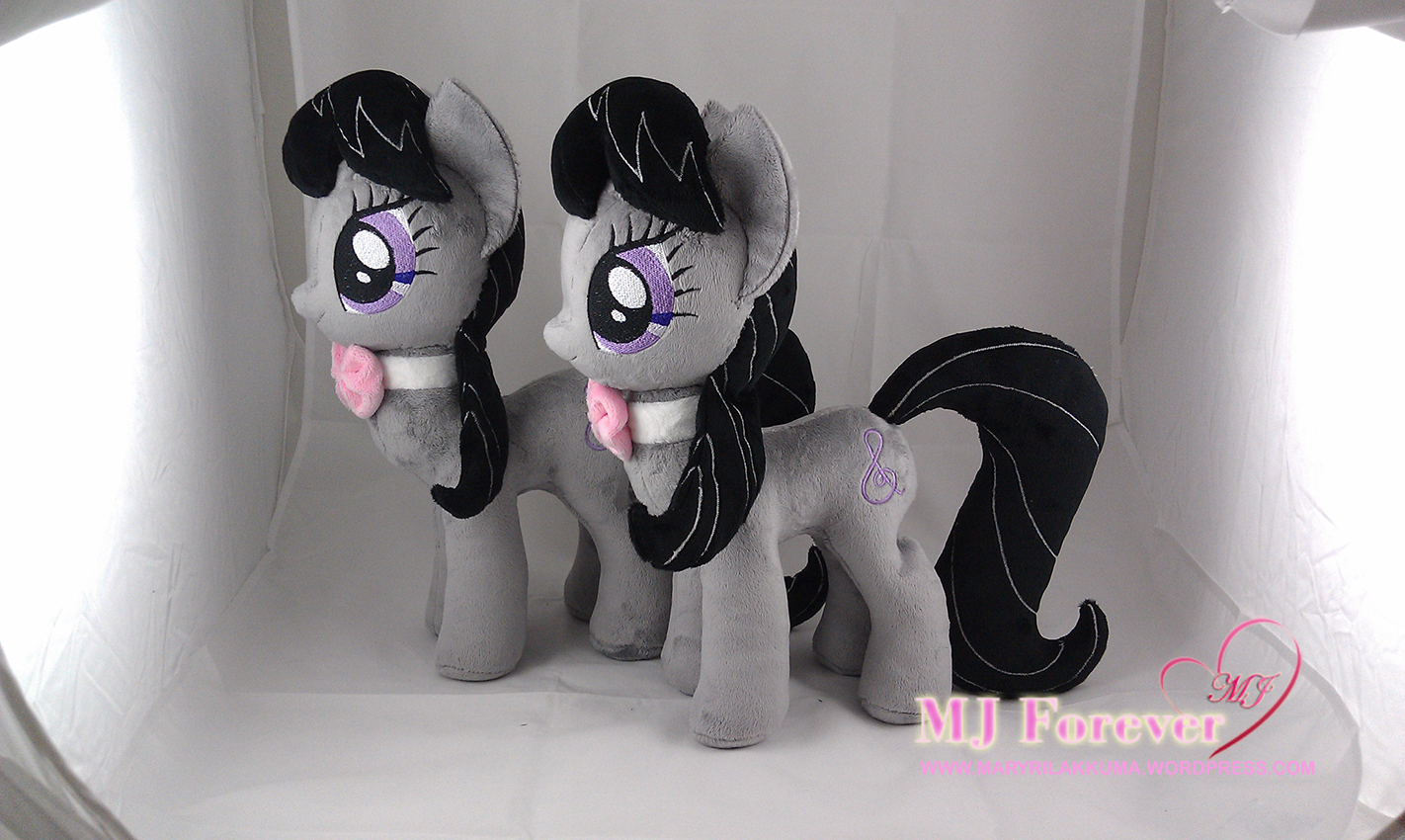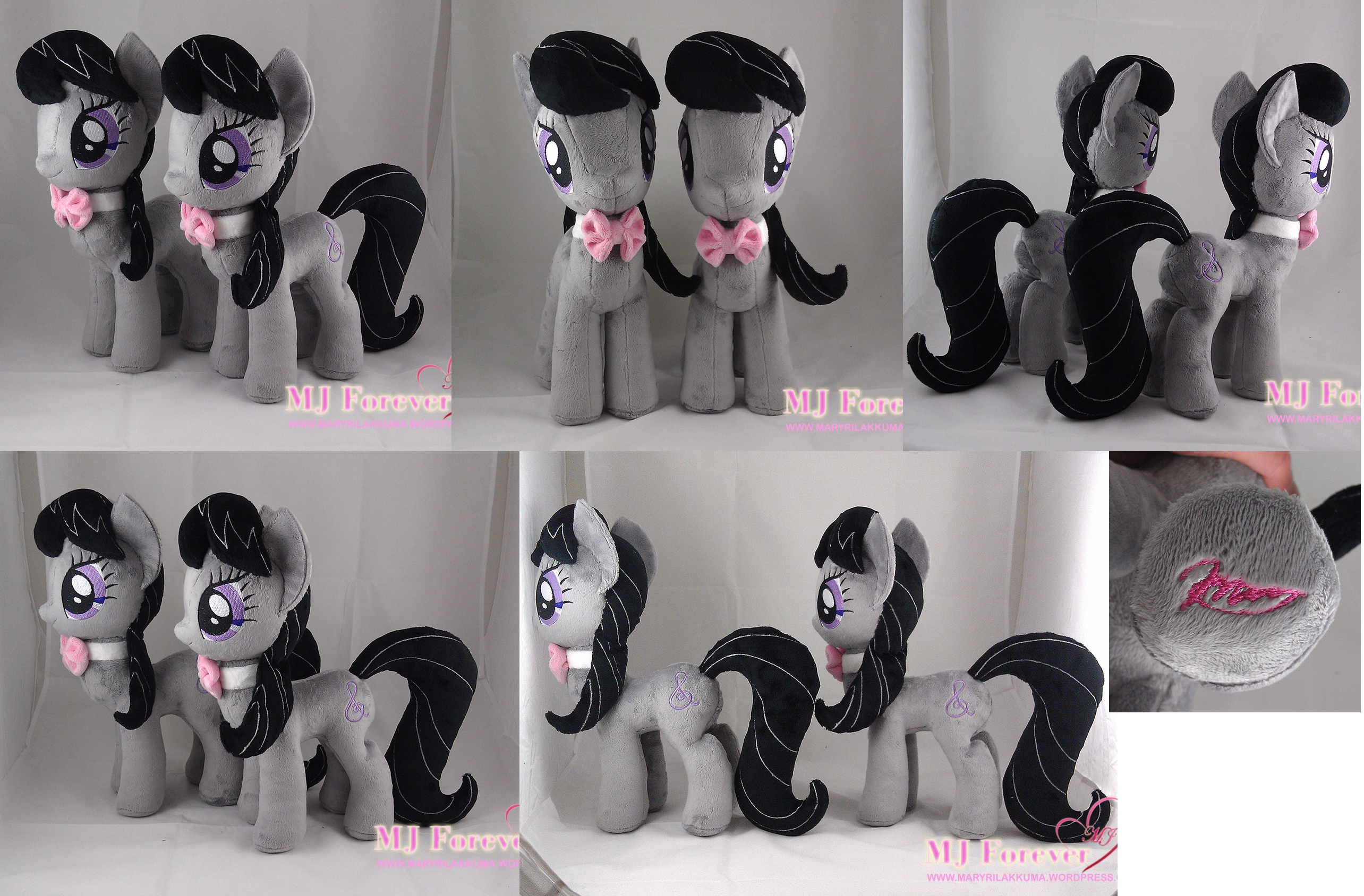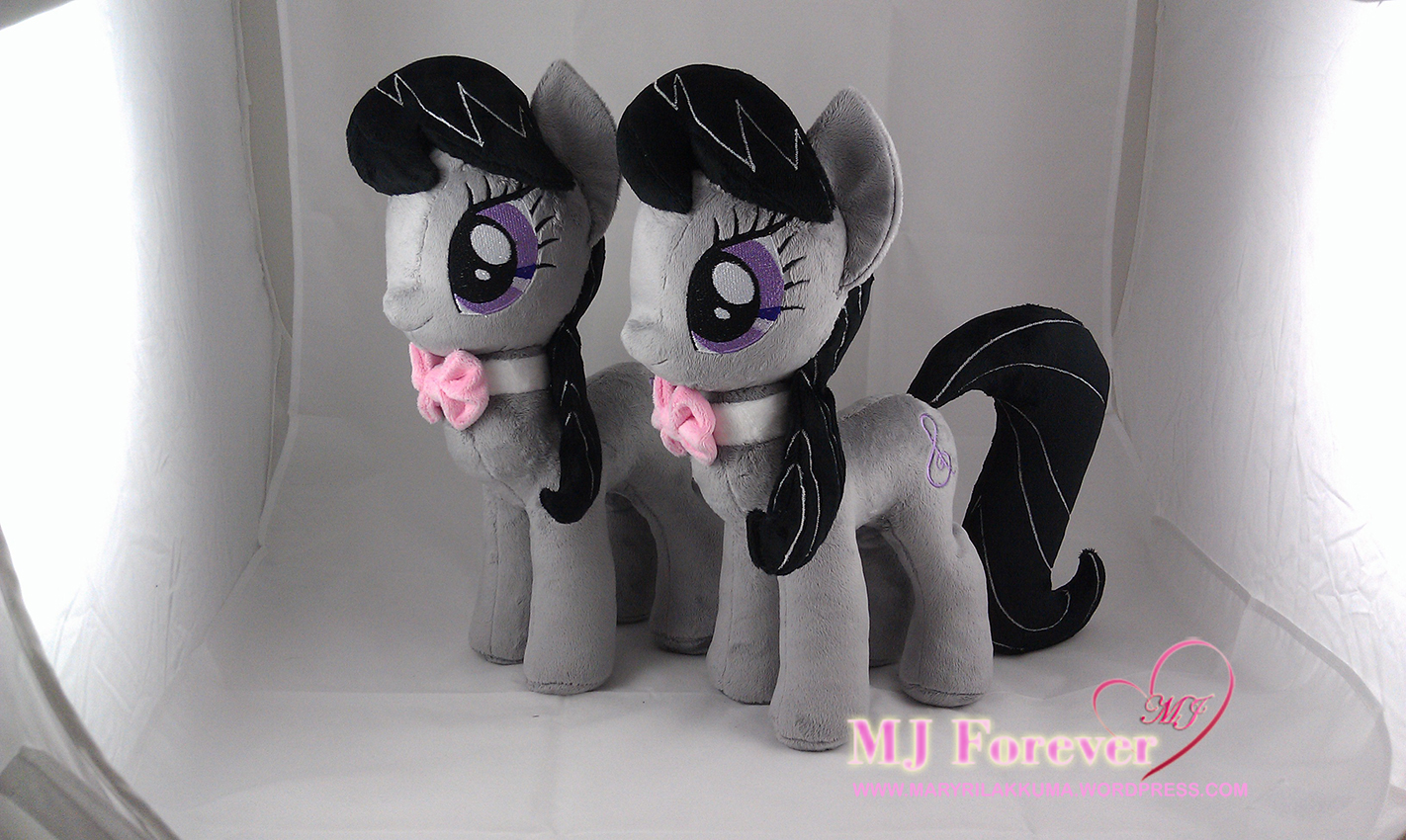 Octavia took a bit longer than I’d expected because, as much as I love Octavia, I actually wasn’t as “motivated” with sewing her as I was with the other “more colourful” ponies, in fact, the highlight of her plushing process was the making of her little bow!!!! xD which is of course my favourite colour – PINK! (her bow is so teeny tiny and cute!!! I love it so much! :3)