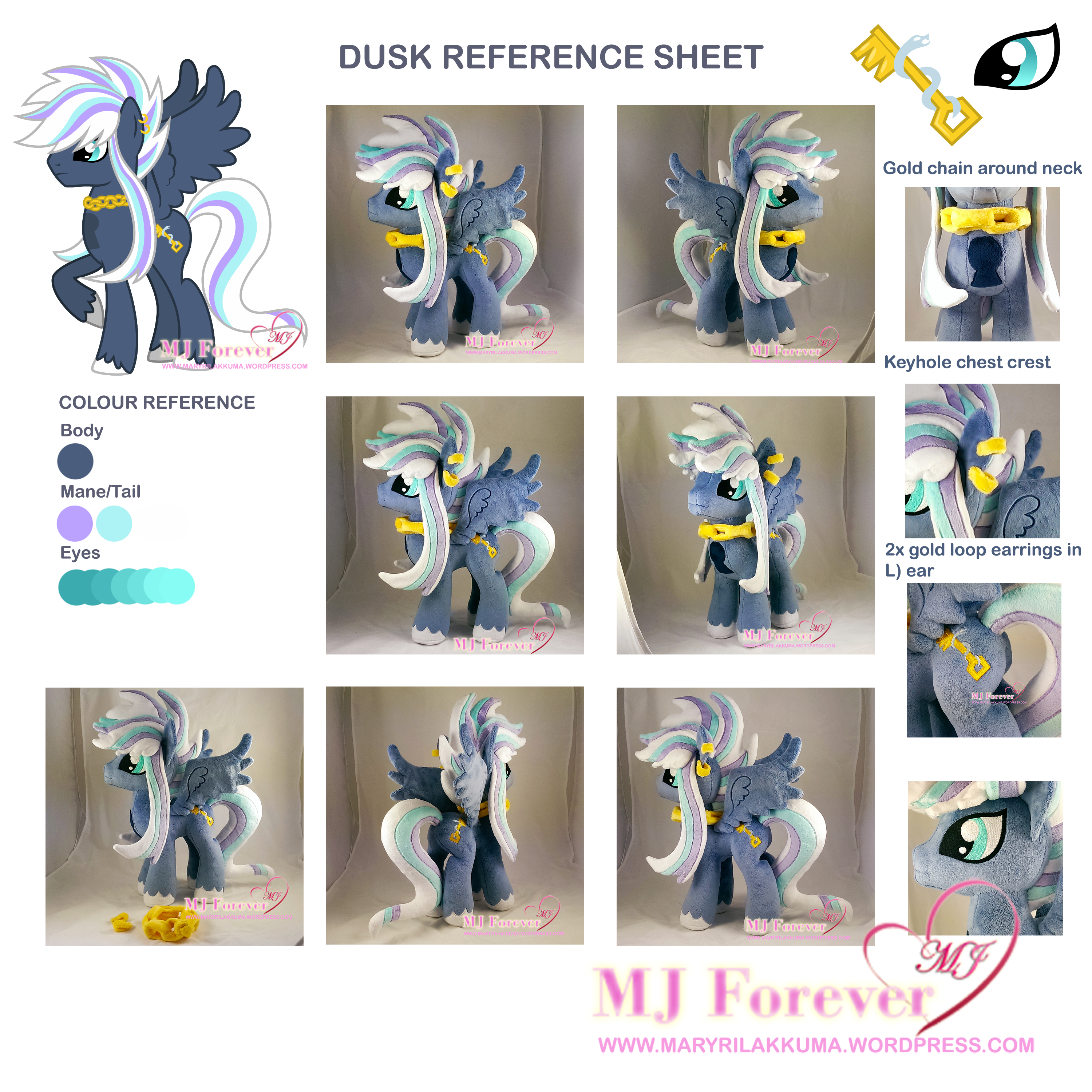 I’m so proud to share with you photos of my Dusk plushie! 😀 He arrived yesterday morning but I didn’t get a chance to take photos of him since I had to work a long day >.>. He’s sewn by the Little-Broy-Peep sisters, who are the most awesomest + talented + bestest plushie artists/people! He stands approximately 20.5 inches tall and all his accessories are magnetized and removable. I love him SO MUCH! ❤