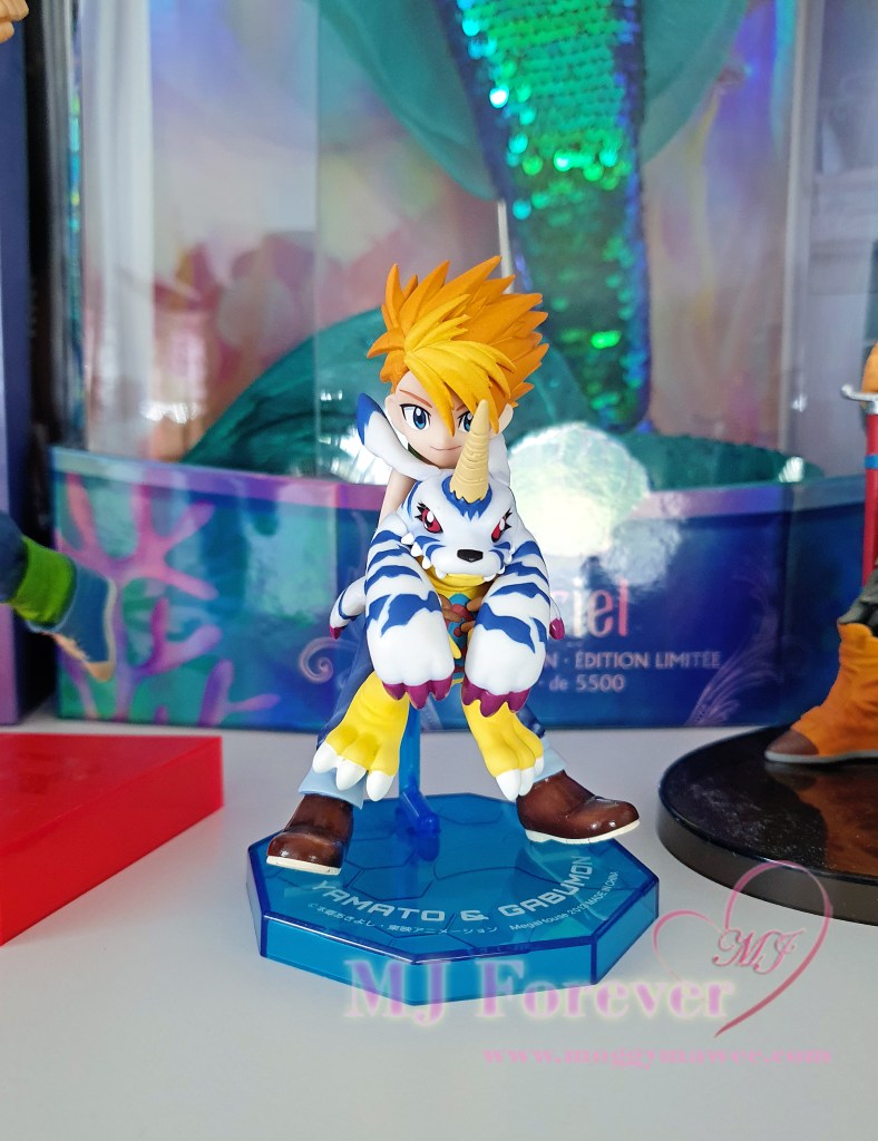 My absolute favourite DigiDestined was Matt Ishida (Yamato)! I was utterly obsessed with (and probably had a crush on) him during my early grammar years, and I remember drawing soooo much fanart of him. I now own a small handful of his merch, and thought it’d be nice to share them. Here are some pics of his MegaHouse G.E.M. Series figure that I ordered from Japan several years ago, and a tsum that my brother bought me when he holidayed in Japan. It’s so soft and cute! I also have another MegaHouse figure of Matt leaning against a sleeping Garurumon playing his harmonica, but I haven’t had a chance to debox and photograph it yet.