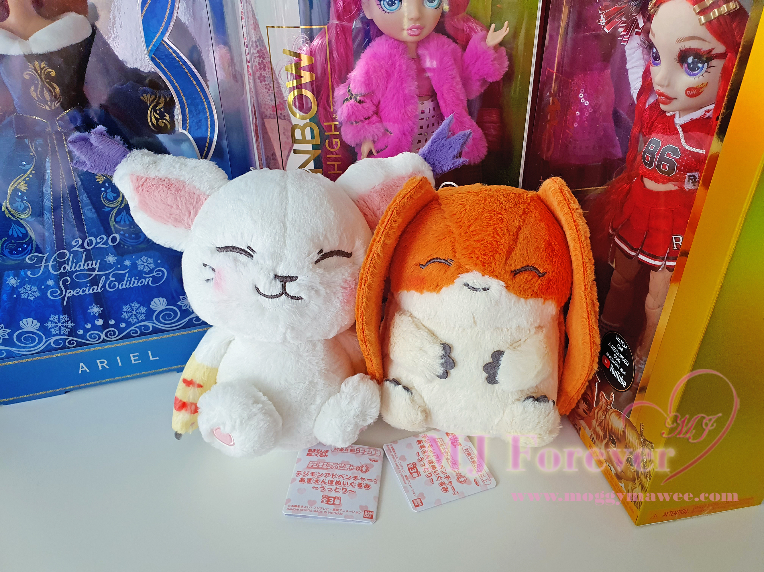 Knowing how rigged Toreba can be, I told myself I’d be happy with just winning Gatomon. However, to my surprise the claw was crazy strong and I ended up winning both her and Patamon! Which is amazing because I adore this sweet little potato. His evolution to Angemon was one of my most favourite scenes from the cartoon. I remember bawling (in secret of course). This is in spite of how cheesy and cringey the dubbed version was in comparison to the subbed version! Man, I really must find time to watch the entire season subbed some time! Anyway, I love these fluffy happy babies and they’re never leaving my plush collection ever!